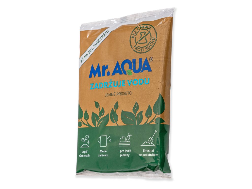 Mr.AQUA BEZ CHEMIE PROTI SUCHU je pomocnou půdní látkou.