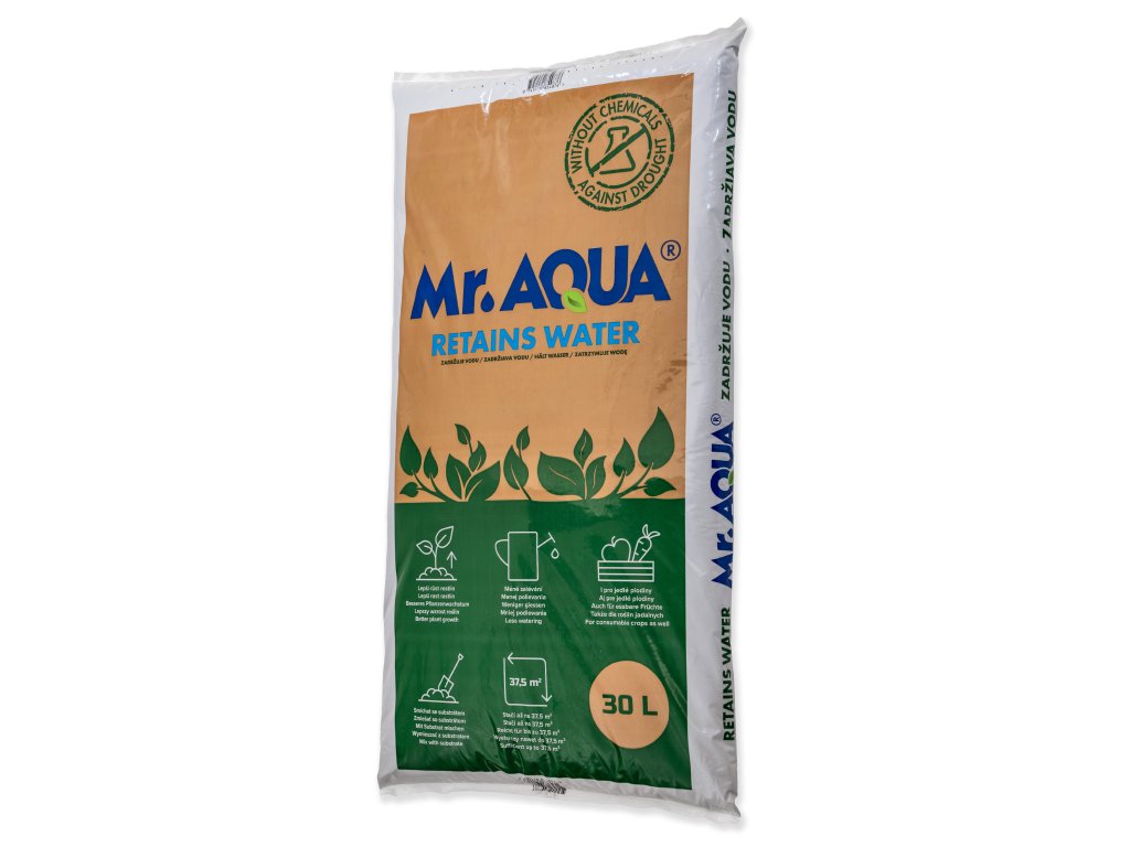 Mr.AQUA BEZ CHEMIE PROTI SUCHU je pomocnou půdní látkou.